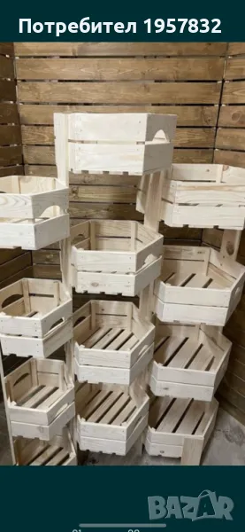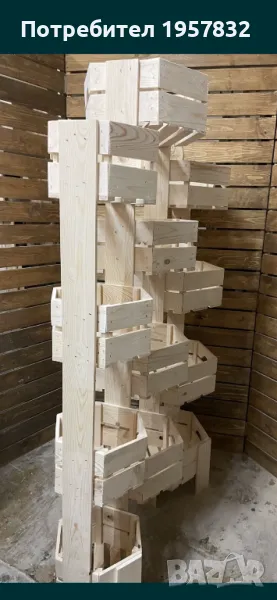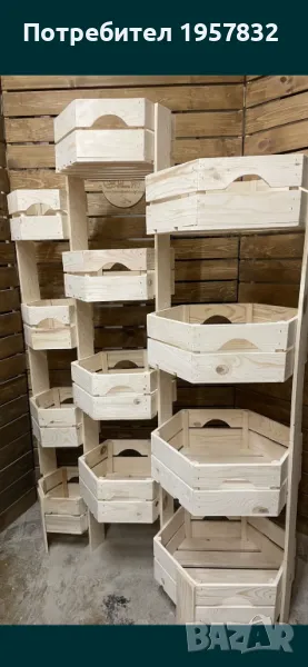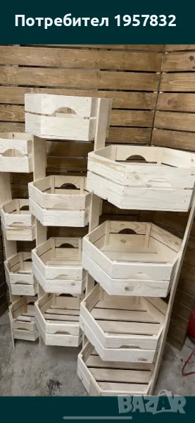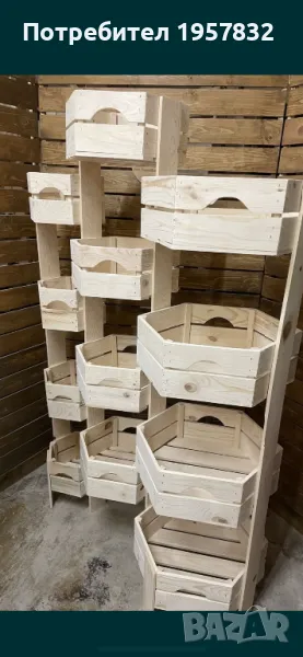 Стелаж за плод и зеленчук с шестоъгълни дървени щайги → Обява 48841509