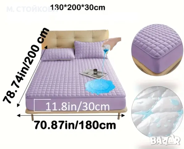 шалте, кувертюра, покривало, протектор за голям спален матрак с ластик в лилав цвят - водоустойчив → Обява 48841704