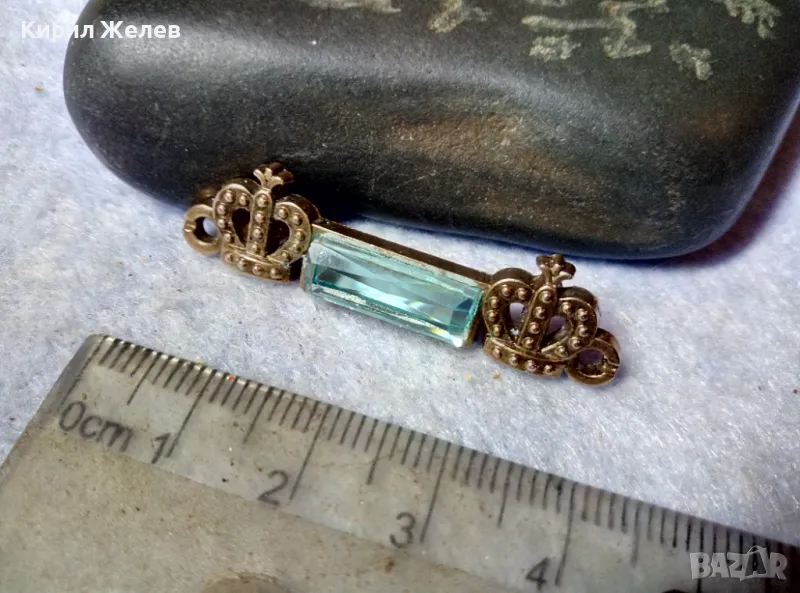 СТАРА АРИСТОКРАТИЧНА МЕСИНГОВА АРТ АПЛИКАЦИЯ с ФАСЕТИРАН СИН КРИСТАЛ 48758 → Обява 48842223