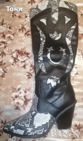 Нови Кожени Черно Бели Дамски Чизми 39 → Обява 48842263
