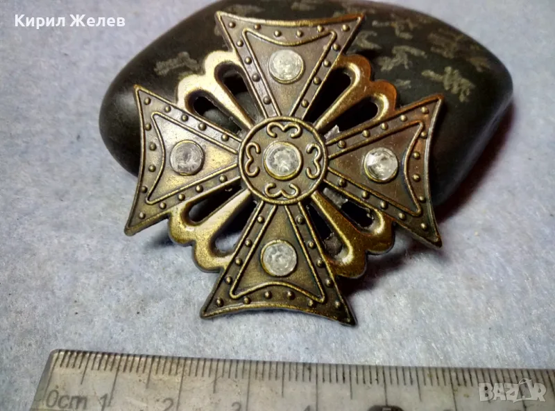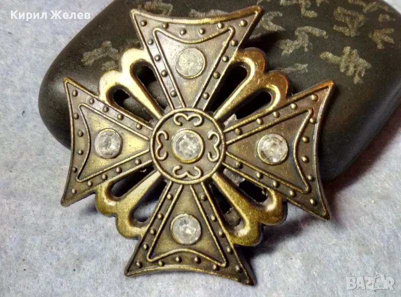 ИНТЕРЕСНА РИЦАРСКА МЕСИНГОВА АРТ АПЛИКАЦИЯ във ФОРМАТА на МАЛТИЙСКИ КРЪСТ 48762