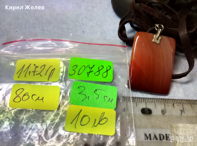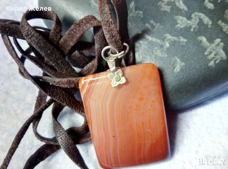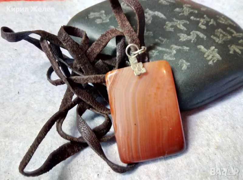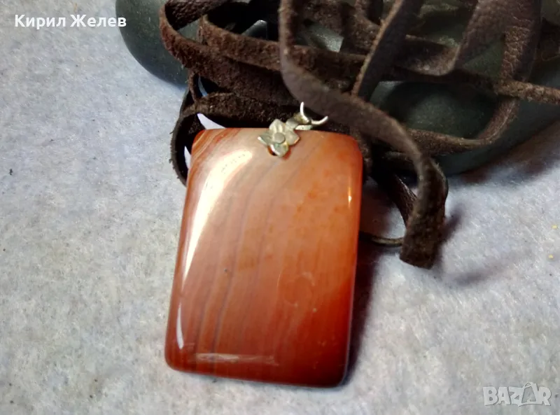ЕЛЕГАНТЕН ПЕНДАНТ МЕДАЛЬОН КОЛИЕ РЪЧНО ШЛИФОВАН ПОЛИРАН МРАМОРЕН АХАТ с ВЕЛУРЕНО ШНУРЧЕ 30788