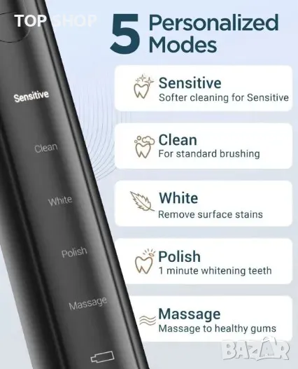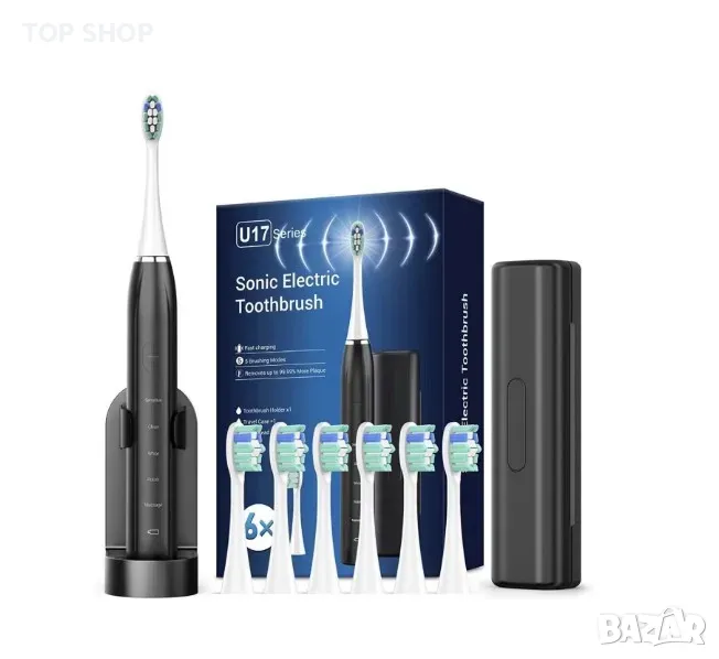Електрическа Ултразвукова четка за зъби Phylian Pro U17, 6 сменяеми четки, 5 режима на четкане, Чере → Обява 48842509