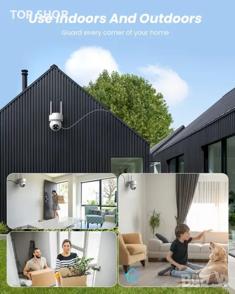 【2K по-ясна и споделена камера】 Камерата за сигурност използва новата версия на 2K технологията. Направете изображенията и видеоклиповете по-ясни. Независимо дали се използва на закрито или на открито, той може да разбере по-добре какво се случва в зоната за наблюдение. Външната камера поддържа споделяне с много потребители. Можете да сканирате кода чрез приложението, така че вашето семейство да може да контролира домашната охранителна камера.