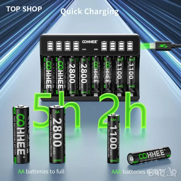 Интелигентно зарядно устройство за батерии с 8 x AAA батерии, интелигентно зарядно устройство за бат