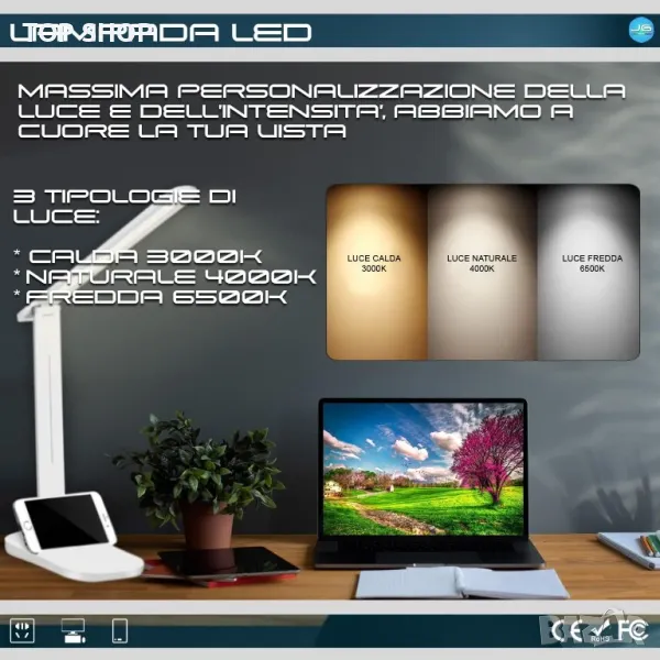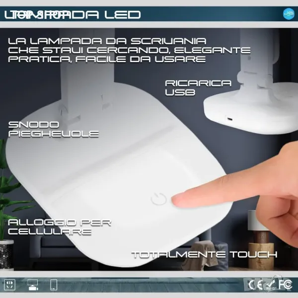 ✳️ПЕРФЕКЦИЯ: Лампата JG е сгъваема във всичките си части, така че да направи употребата й практична на всяко място и лесна за носене в раница или чанта, за да я използвате дори на почивка или навън в нашето LED бюро Лампата е презареждаема през USB и също така ще ви позволи да използвате вашия смартфон при пълна свобода благодарение на отделението за държач за мобилен телефон.