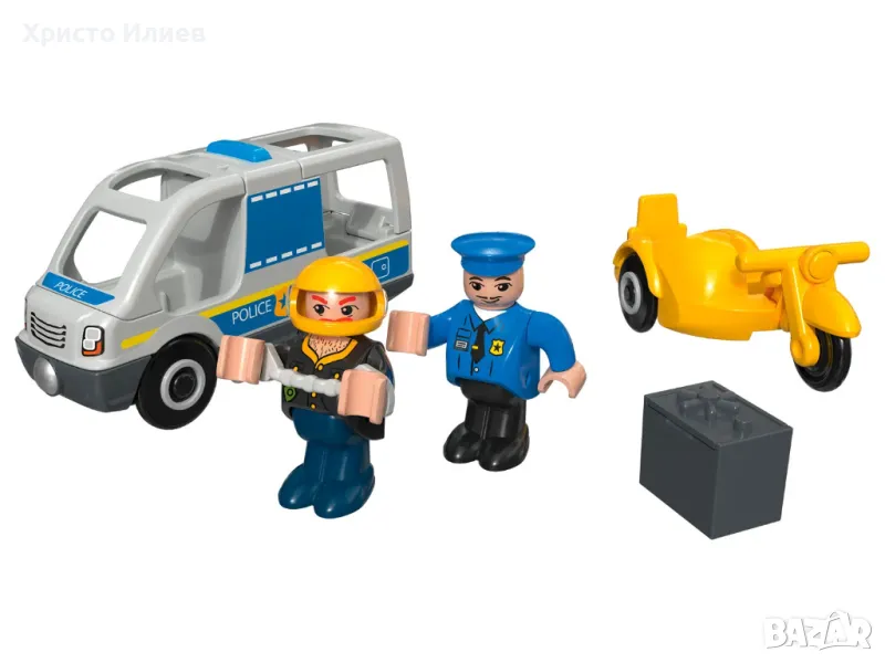 - Полицейска кола с изскачащ покрив и мотоциклет