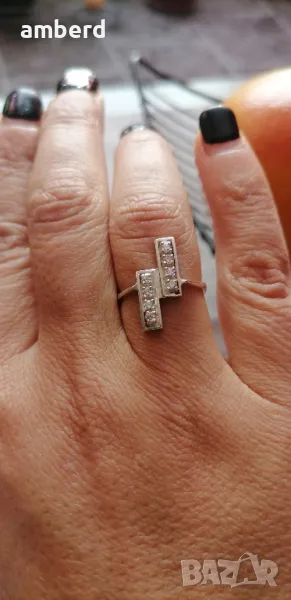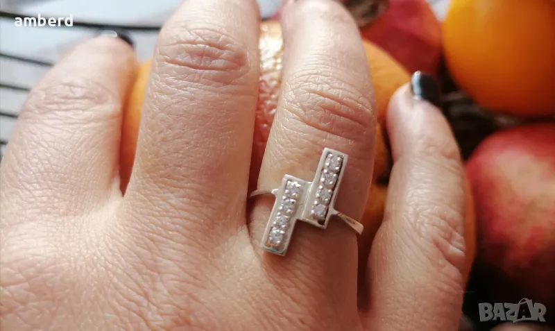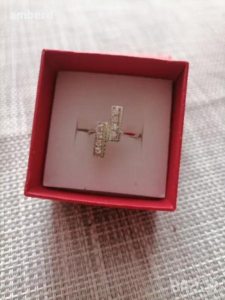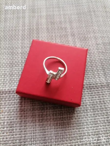 Нежен и елегантен пръстен, изработен от сребро проба 925 и 8 бели циркони. Вътрешен диаметър 17.3мм. Тегло 2.35гр.