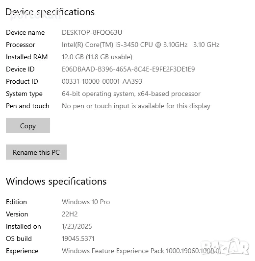 Процесор: Четириядрен Intel Core i5-3450, 6MB кеш