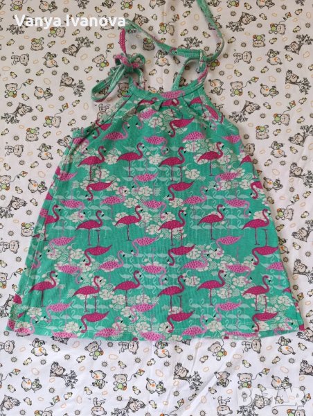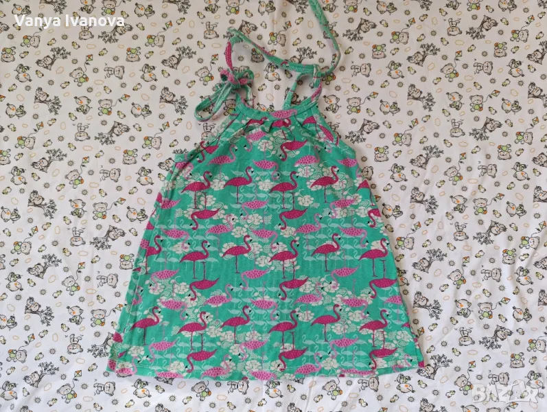 1 Зелена рокличка 74 размер на датската марка Friends , от памук.2 .Зелена рокличка с фламинго, с връзки , подходяща и за море 12 месеца.3 Бяла рокличка с диня и близалки на matalan 12 -18 м.