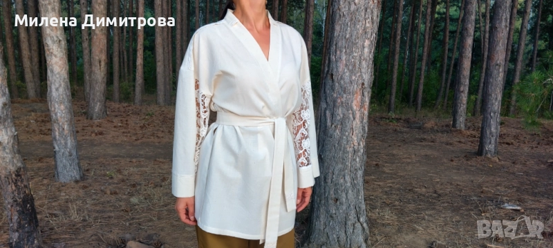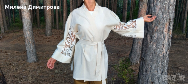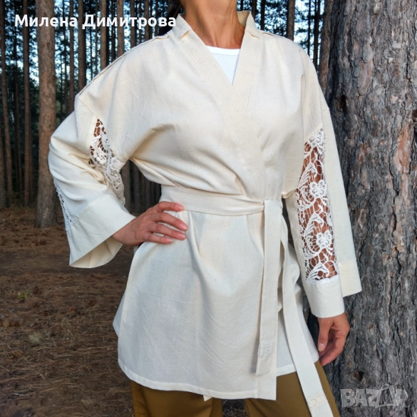 Ленено кимоно / Кимоно от американ и дантела ръчна изработка