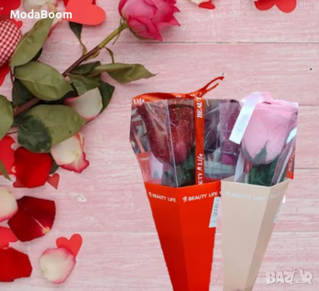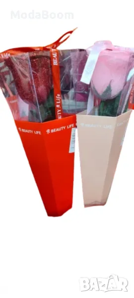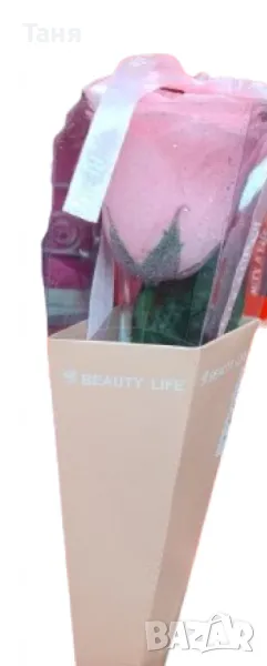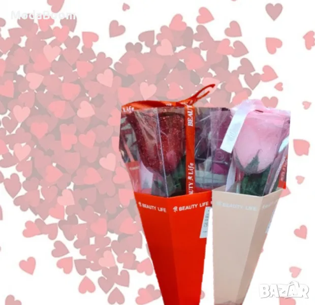 Опаковка: Твърда картонена кутия с прозрачен капак за видимост и панделка за завършеност;