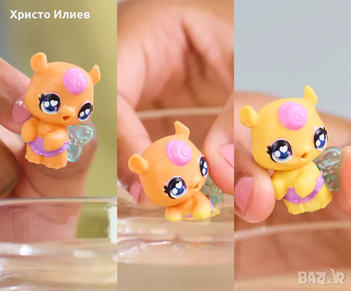 Комплектът от Hatchimals ще се хареса на всички малчугани. С него децата ще могат да развихрят въображението си и да измислят безброй игри. Комплектът включва две цветни яйчица, които сами да излюпите. За целта трябва да ги намокрите - махнете бибероните, напълнете ваната с вода и поставете яйцата едно по едно във ваната. Наблюдавайте магията - водата ще промени цвета си и ще заблести, а новите ви приятели ще започнат да се излюпват пред очите ви. За още повече забавление двете фигурки също променят цвета си, когато ги потопите в топла вода и връщат предишната си визия в студена вода.
