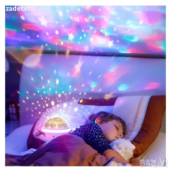 Превърнете всяка стая в магическо място с нощната лампа - проектор на звездното небе! Този уникален продукт създава мистичен светлинен ефект, който наподобява безкрайната красота на нощното небе. С помощта на прецизни проекции и мека, успокояваща светлина, лампата ще внесе уют и релаксация във всяко помещение.