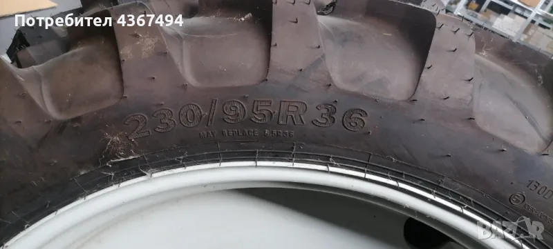 Два броя нови гуми с джанти от Италиянска прикачна пръскачка Баргам Елиос. Гумите са с размер 230/95R36 Alliance.