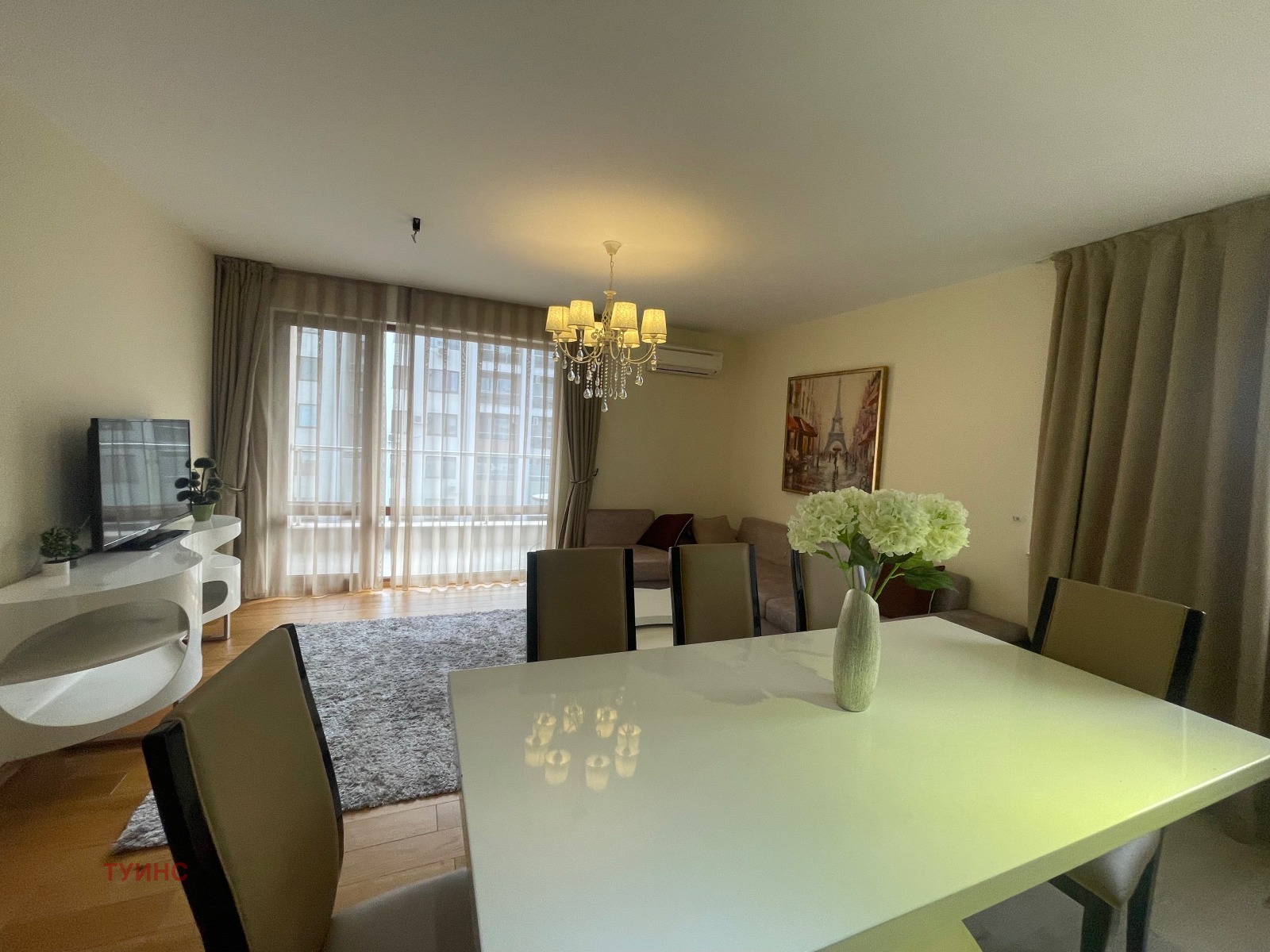 Предлагаме на Вашето внимание супер луксозен 3-ен апартамент в нова кооперация в близост до ВСИ и м-н Баумакс. Разпределение - просторен хол с трапезария и кухненски бокс, 2 спални, 2 санитарни възела, тераса, антре. Жилището е напълно обзаведено с дизайнерски мебели и ел. уреди. Климатици във всички помещения. Тихо и супер комуникативно място за живеене. Южно изложение. Предлагат се гаражи и паркоместа по желание на клиента.