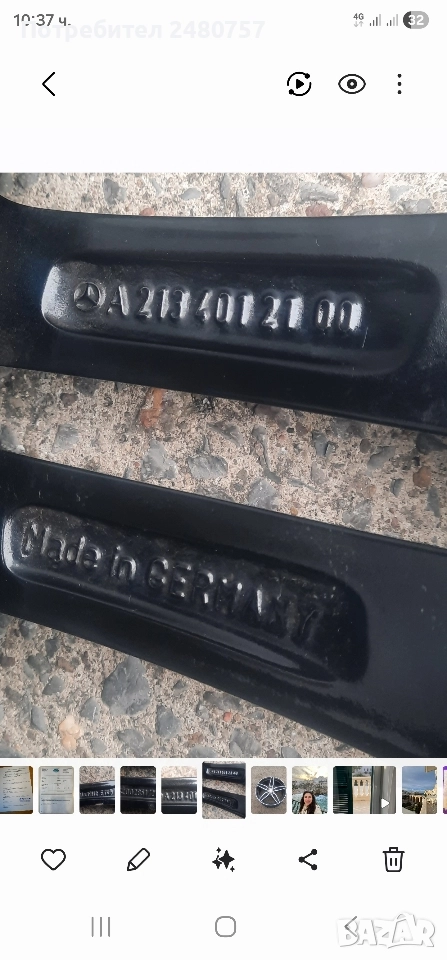 продават се AMG оригинални джанти 19 цола.Спорт пакет задна дясна има дефект./ударена е/.цена брой е 300лв.