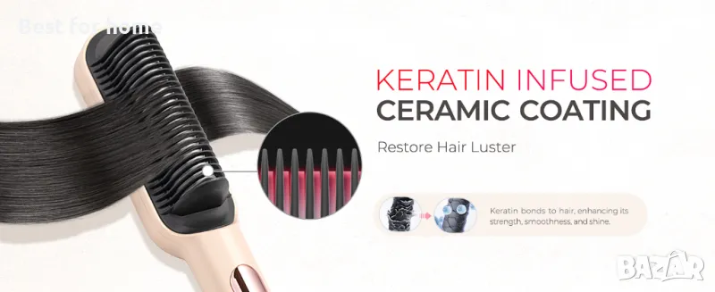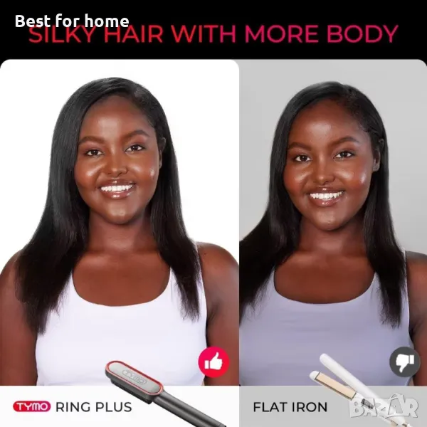 TYMO RING PLUS - Плюс с кератиново керамично покритие: С патентован дизайн на зъбите, четката за изправяне на коса TYMO може лесно да премине през косата ви от корена до върха, изправяйки косата ви с едно движение. Освен това, покрита с нано-титан, нашата нова четка за изправяне на коса може да предава топлина на косата ви по-бързо и равномерно.
