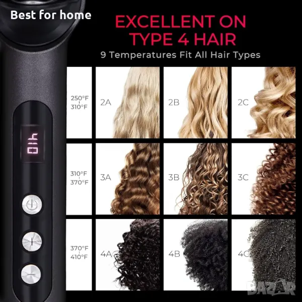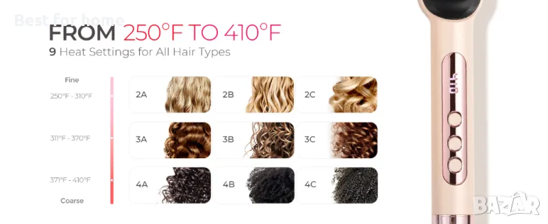 TYMO RING PLUS - Плюс с по-широки температурни диапазони: Четката за изправяне на TYMO има 9 прецизни температурни настройки (250℉~410℉), проектирани да пасват на различни типове коса. С LED дисплея можете лесно да намерите най-подходящата температура за създаване на страхотна прическа.