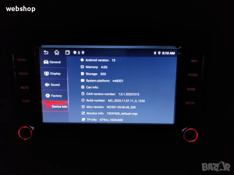 Дисплей: 7 инча, резолюция 1024 x 600;