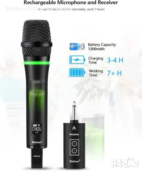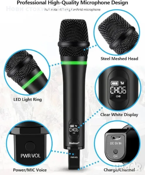 Безжичен микрофон Bietrun само за вход за микрофон, UHF метален динамичен WXM19A многофункц