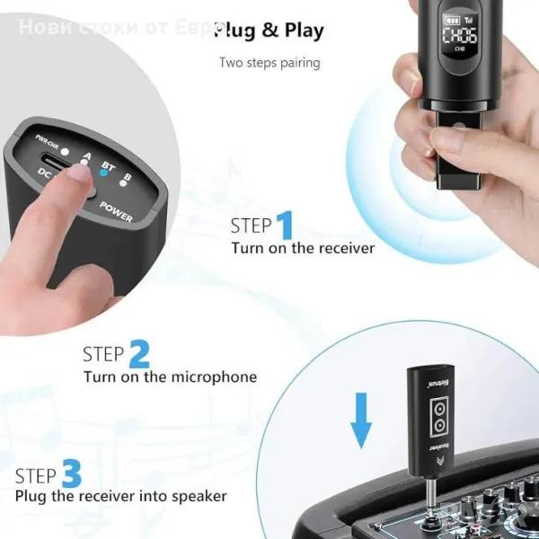 Безжичен микрофон Bietrun само за вход за микрофон, UHF метален динамичен WXM19A многофункционален микрофон с акумулаторен приемник (работа 4 часа), обхват 160 фута, за караоке машина, високоговорител с усилвател, миксер,Дълъг безжичен сигнал и регулируем честотен канал 15: ● Микрофонът приема UHF честотна лента и осигурява голямо разстояние на предаване (отворено пространство: UHF разстояние 168 фута/50 м, Bluetooth 32 фута/10 м), ниско забавяне и чисто качество на звука. ●Ако използвате няколко микрофона едновременно, натиснете бутона "CH" в края на микрофона, за да настроите канала. Акумулаторен микрофон: ●Не е необходимо да купувате допълнителни AA батерии. ● Микрофонът и приемникът са 1200 mAh акумулаторна литиево-йонна батерия. Време за работа до 7 часа със зареждане 3-4 часа. ●Готин LED светлинен пръстен (работещ в зелено, зареждащ се в червено) и подобрен прозрачен и модерен бял LED дисплей. Лесен за използване: ●Plug and play, няма нужда от сдвояване, натиснете продължително бутона "PWR·VOL", за да включите микрофона. Само за входни устройства с 6,35 мм (1/4 инча) или 3,5 мм (1/8 инча) изход за микрофон, например високоговорител, пееща машина, аудио усилвател, PA система, усилвател на звука, система от високоговорители за камиони, система от куполни високоговорители и др. ●Приемник с Bluetooth. Включете приемника и го поставете във вашето аудио устройство, потърсете Bluetooth името: Bietrun, пуснете вашата караоке музика. Многофункционален микрофон: ● Вграден динамичен кардиоиден микрофон, гласът е по-ясен. Широко прилаган за конференция, реч, уеб подкаст, инструктор по йога, църква, среща, семейно парти, церемония по откриване, инструктор по танци, промоция и др. ●Външният капак на микрофона е материал от сплав, който е по-твърд, по-лек и по-устойчив на износване, този микрофон има по-добро тегло и изживяване при захващане. Калъф за единичен безжичен микрофон: Калъфът за пътуване с един микрофон е проектиран с точки за поставяне на един микрофон, една точка за поставяне на приемника и отделение за аксесоари, идеален за съхранение на Bietrun wxm04, wxm19A, wxm09A - максимални размери на микрофона - 26,2 cm X 5,1 cm. Не поддържа двоен микрофон или система за домашен микрофон.