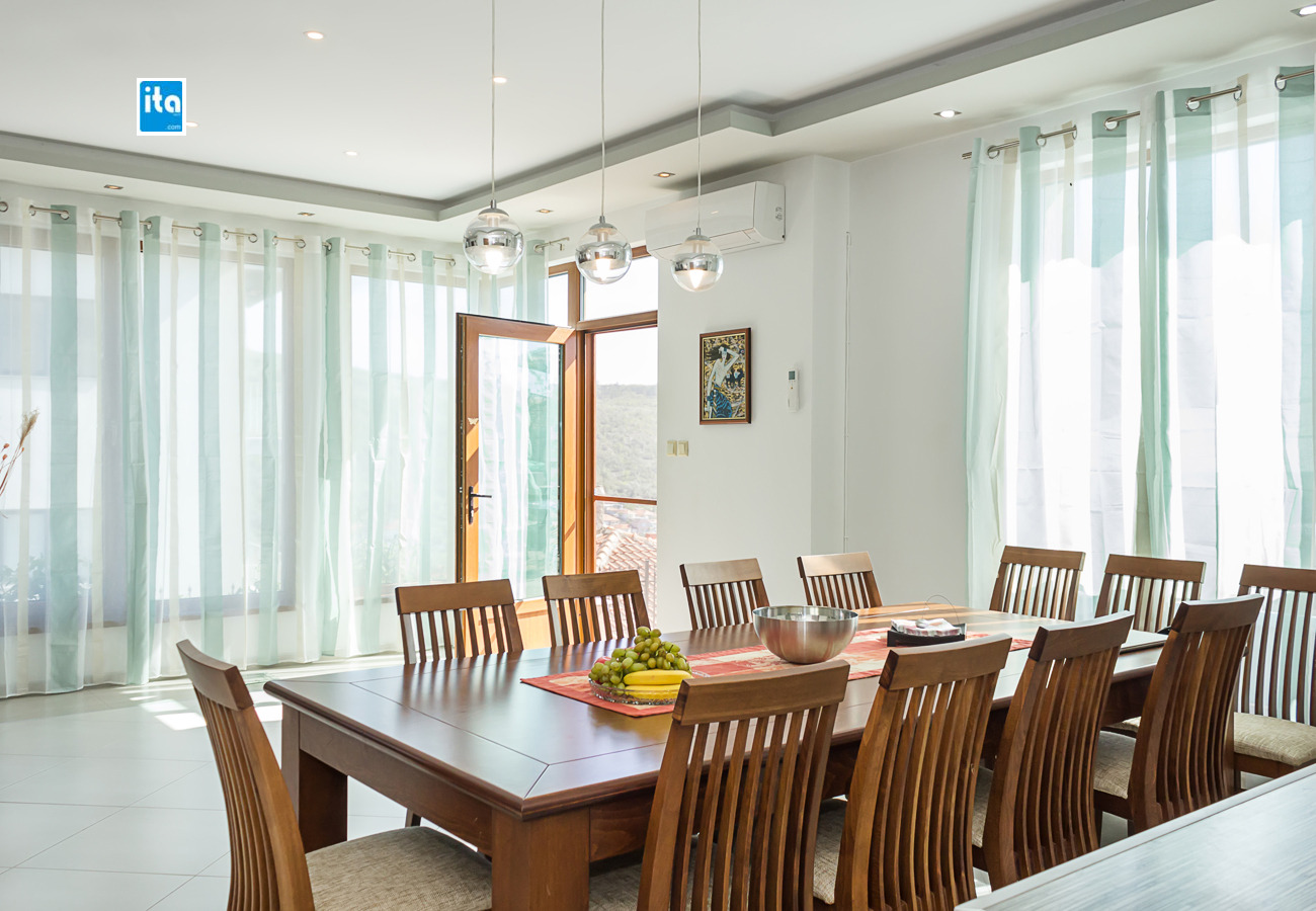 НОВОПОСТРОЕНА, МОДЕРНА КЪЩА в центъра на гр.Балчик; УНИКАЛНА ПАНОРАМА КЪМ МОРЕТО. Състои се от Първи етаж-Голям Г-образен хол/80 кв.м./, кухненски бокс, трапезария, 2 складови помещения, тоалетна и мокро помещение.Красива вътрешна стълба отвежда към: Втори етаж- 5/пет/стаи, всяка със самостоятелна баня и тоалетна, тераса И ИЗГЛЕД КЪМ МОРЕТО.Къщата е с модерно поръчково обзавеждане, включено в цената и много други екстри; Прилежащ двор-500кв.м.;акт 16-2011год.;топла вода-бойлер 500 литра-загрява се от соларни батерии;ток, вода, центр.канализация. Имотът е подходящ и за семеен хотел; 4-5 паркоместа.Възможна замяна за къща в София или два тристайни апартаменти в София, идеален център! За повече информация:Светла Нешева 0898544081 ; 0888515672 Работим с колеги!