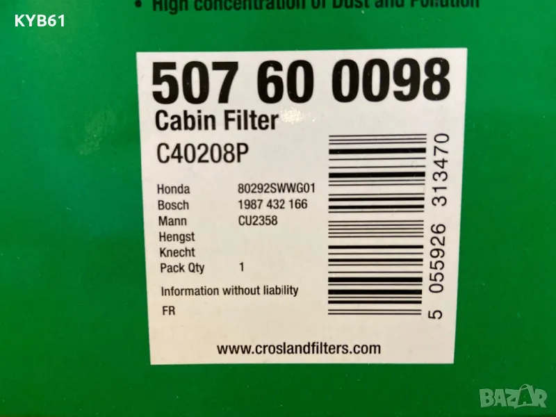Кабинният филтър е марка CROSLAND
