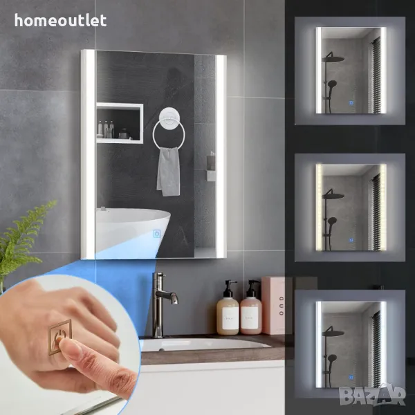 Това модерно и стилно огледало за баня може да се управлява чрез чувствителен на допир ключ.