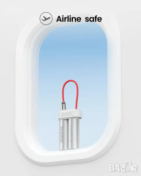 SHARGE Power Bank 10000mAh 30W Преносимо зарядно устройство с вграден кабел тип C, USB-C и USB-A