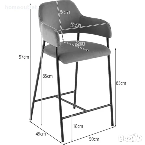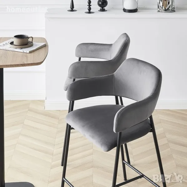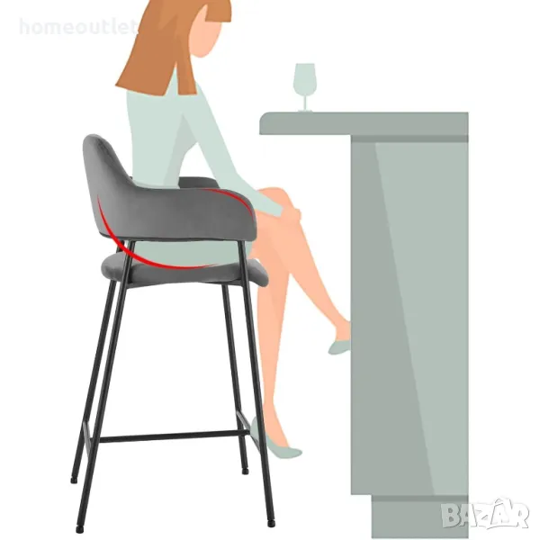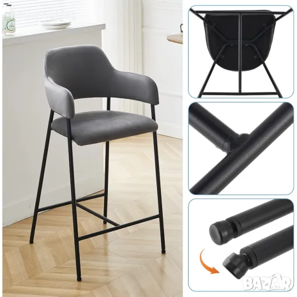 Кадифеният висок стол е изработен с основа от здрава въглеродна стомана, за да се гарантира, че е безопасен и стабилен.