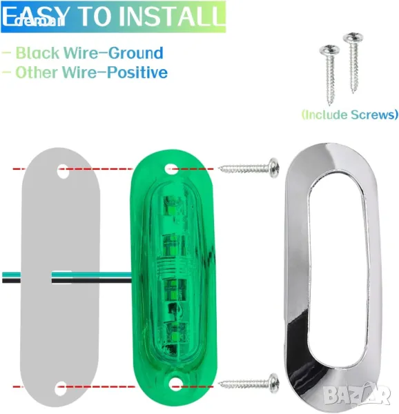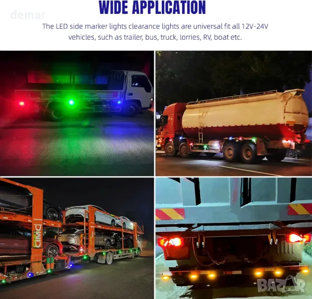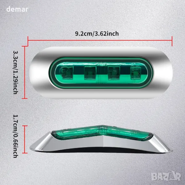 NWpangu 10 броя LED странични габаритни светлини, 4-LED, 12V/24V, зелени