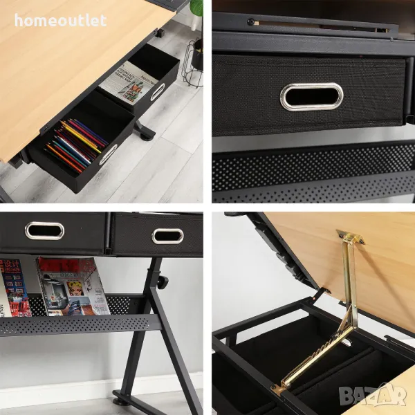 Бюрото за занаяти, писане и чертане осигурява двойно работно пространство, можете да използвате лаптоп и да рисувате едновременно, което е много подходящо за разпределение на много задачи.