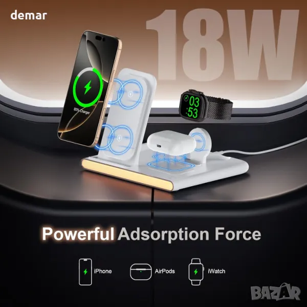 3 в 1 безжично зарядно устройство, станция за зареждане 18W с лампа