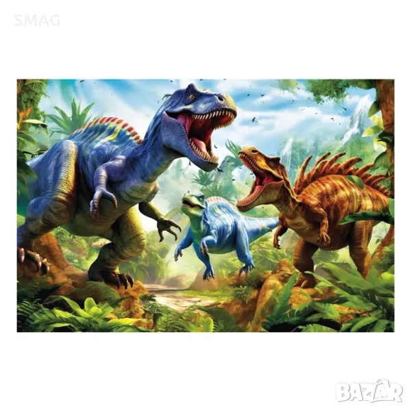 Детски пъзел с изображение на 3 вида динозаври.