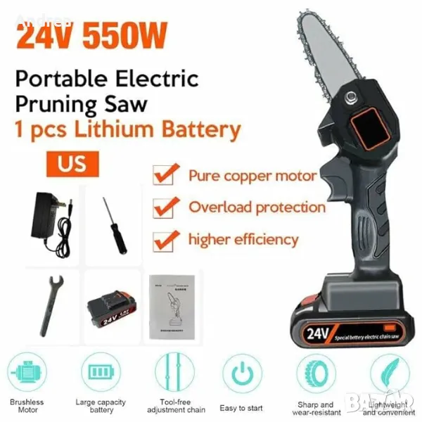 Мини Верижен Трион с акумулаторна батерия 24V, снимка 1 - Други инструменти - 48850497 Мини Верижен Трион с акумулаторна батерия 24V, снимка 2 - Други инструменти - 48850497 Мини Верижен Трион с акумулаторна батерия 24V, снимка 3 - Други инструменти - 48850497 1/3