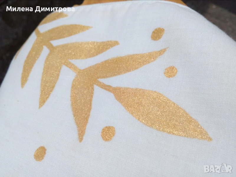 * Гладене на средно висока температура отвътре или задължително с парче плат върху рисуваната част отвън.