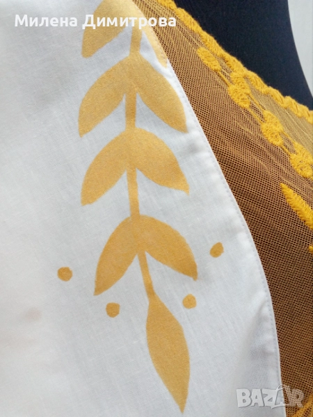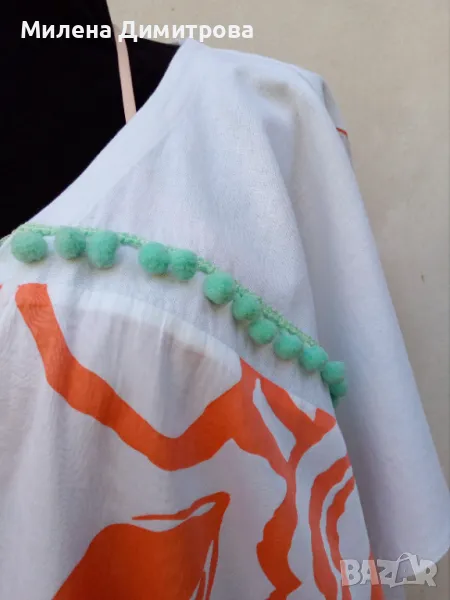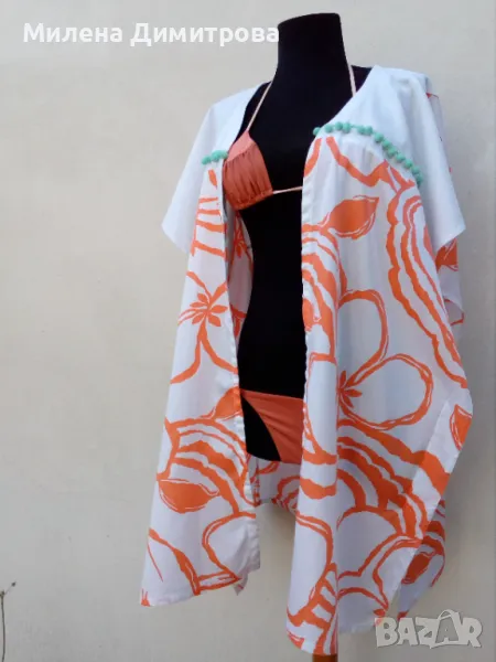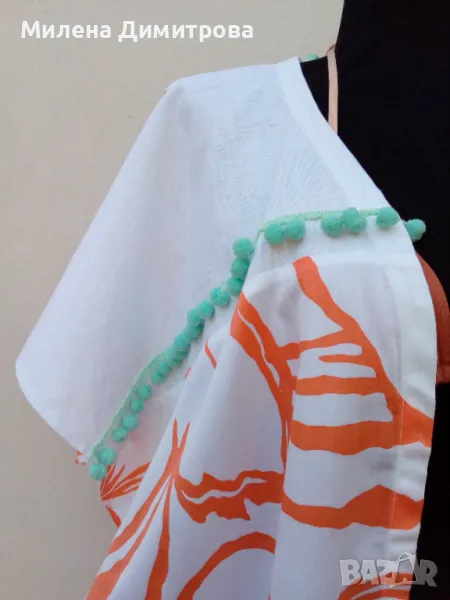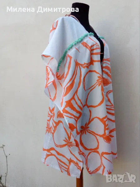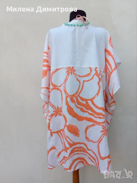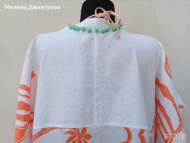 * Състав : 100 % фин памук / оранжев флорален принт / 100 % лен - платки гръб и предни части /