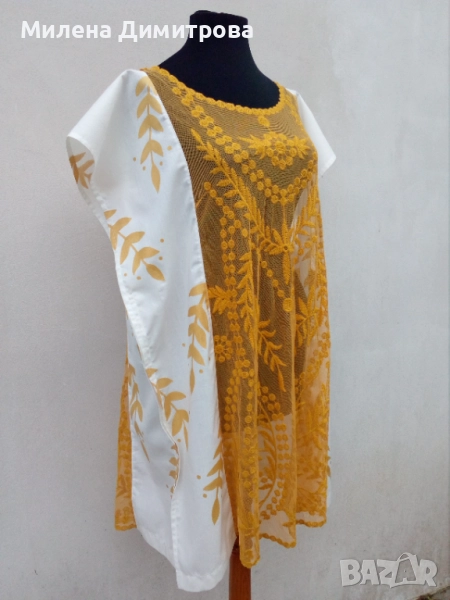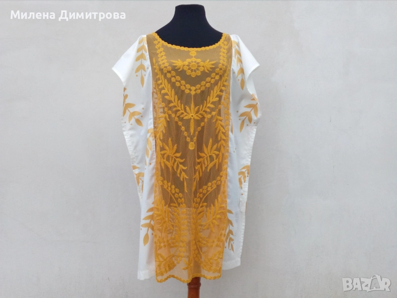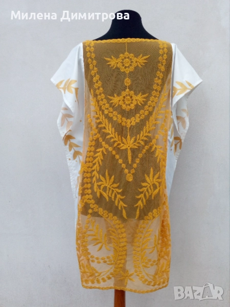 2 Кафтан от дантела и бял рисуван поплин