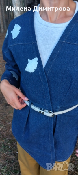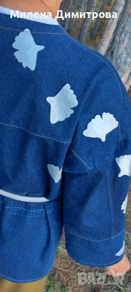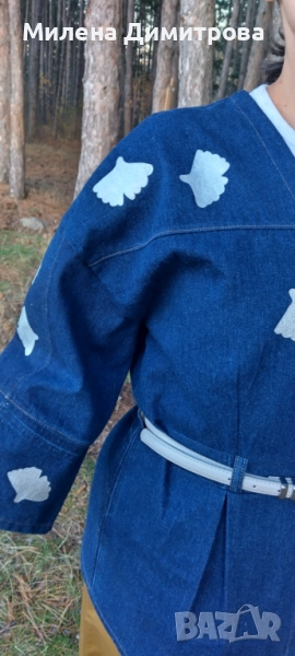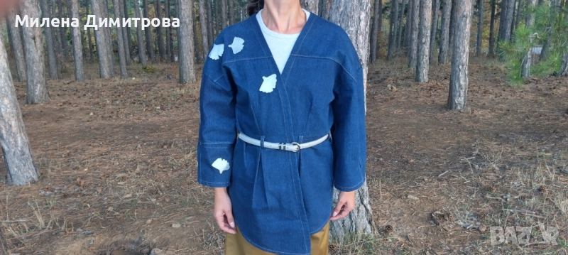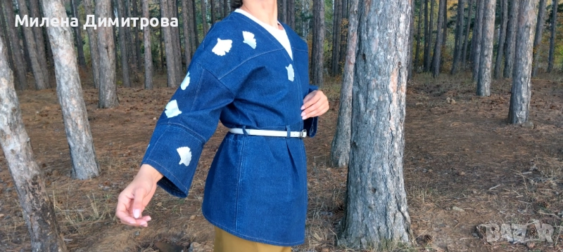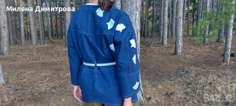 Дамско кимоно от рециклиран деним и рисувана Гинко Билоба → Обява 48851511