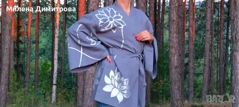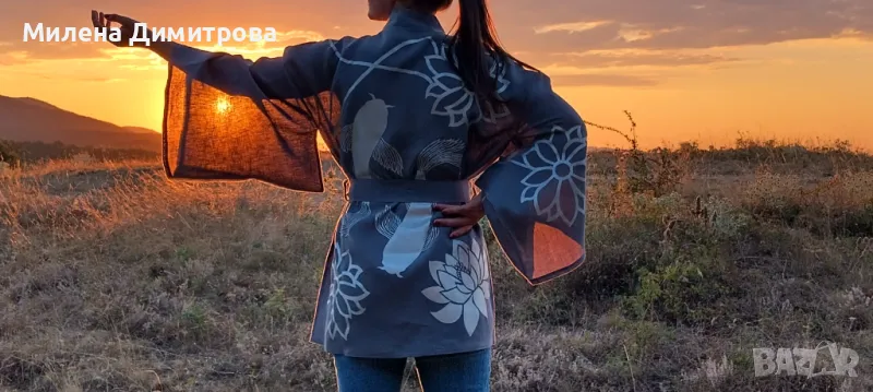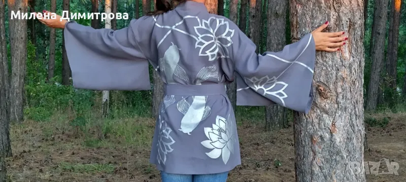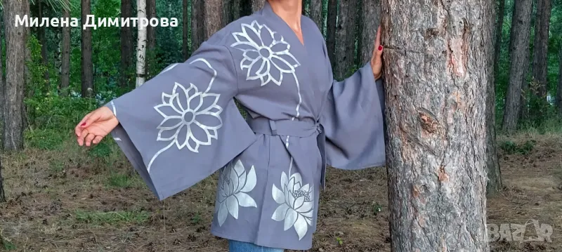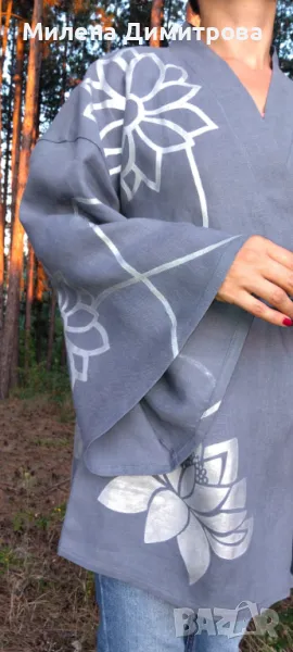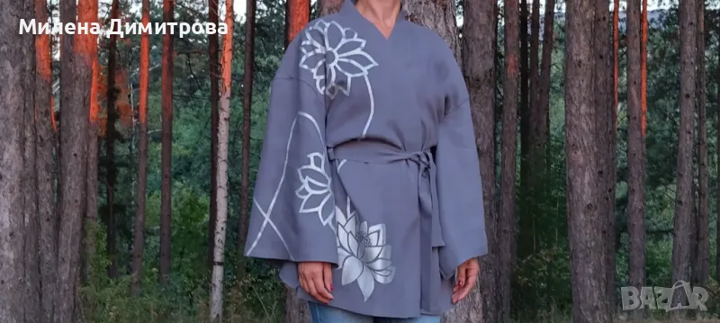Ръчно рисувано ленено кимоно → Обява 48851636