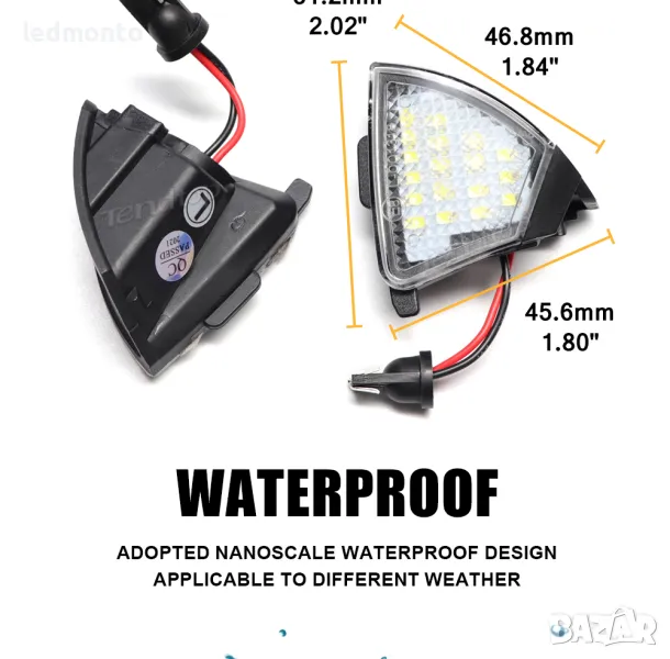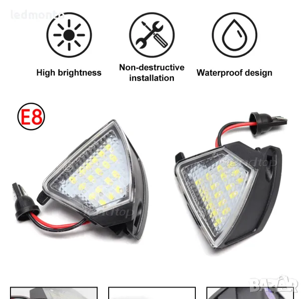 2 бр. LED плафона под странично огледало (ляво + дясно)