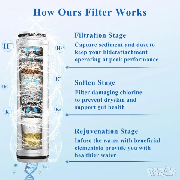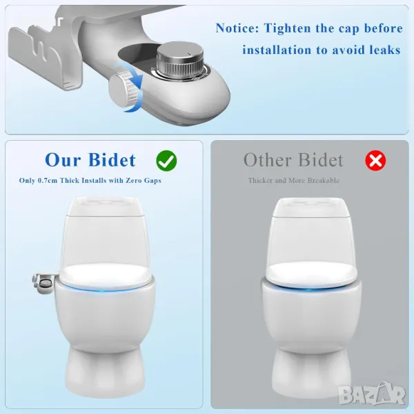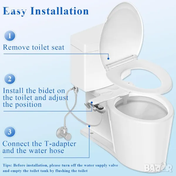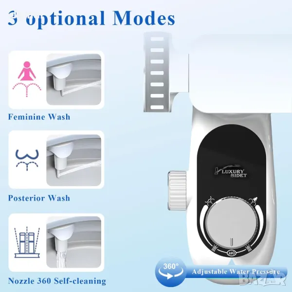 Тази приставка за биде разполага с мощен филтър за премахване на вредни вещества като хлор и тежки метали, като гарантира безопасността на водата и поддържа здравето на червата. С двойни пръскащи дюзи за режими на предно и задно измиване, той се грижи както за мъже, така и за жени и включва самопочистващ механизъм за максимална хигиена. Неговият ултратънък, екологичен ABS дизайн с маркуч от неръждаема стомана пасва безпроблемно на стандартните тоалетни, добавяйки елегантен щрих към вашата баня. Регулируемото копче за налягане на водата осигурява освежаващо почистване, а вградената поставка за телефон добавя удобство. Екологичните предимства включват намалена употреба на тоалетна хартия и предотвратяване на натрупването на калций, спестяване на пари и намаляване на отпадъците с течение на времето.