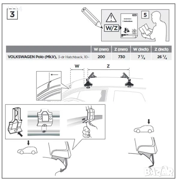 Багажник напречни греди THULE рейки за VOLKSWAGEN Polo 3-врати след 2010 → Обява 48852683