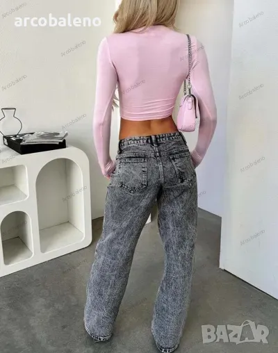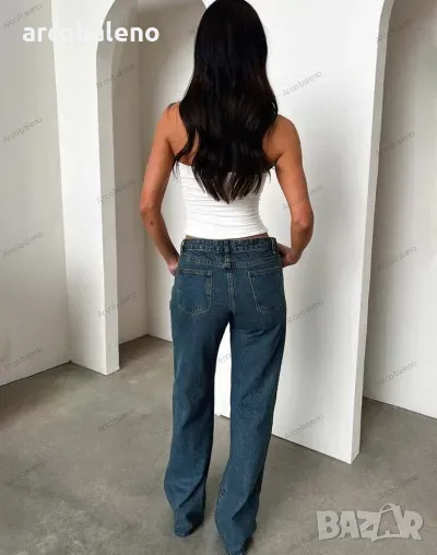 Модни ретро широки дамски дънки с прави крачоли и ниска талия, 2цвята