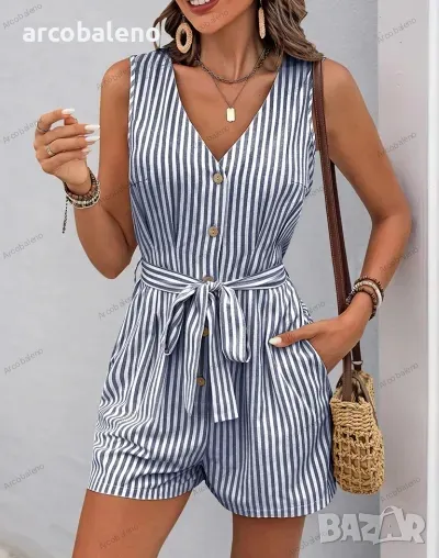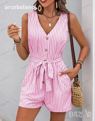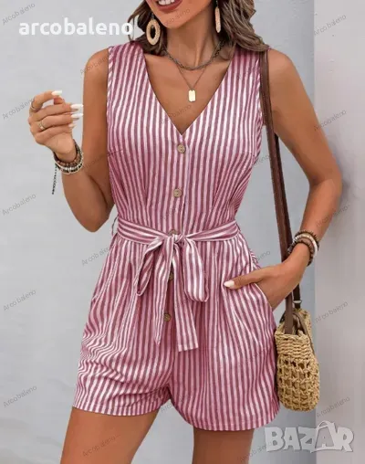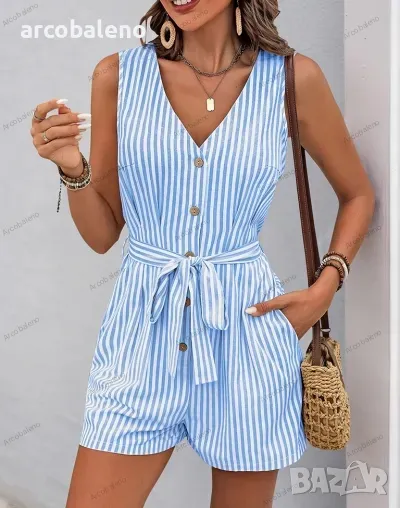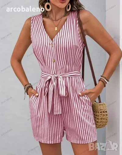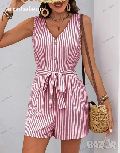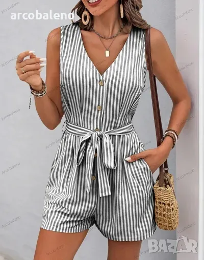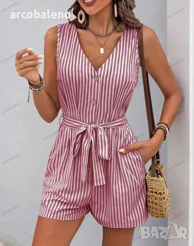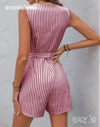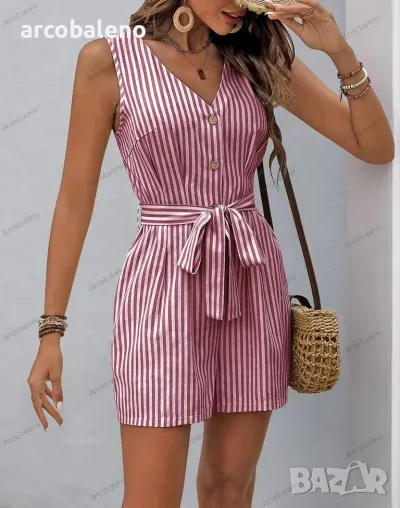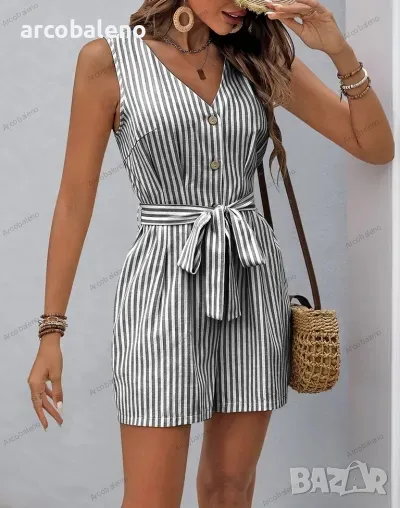 Раиран дамски гащеризон с V-образно деколте, 9цвята