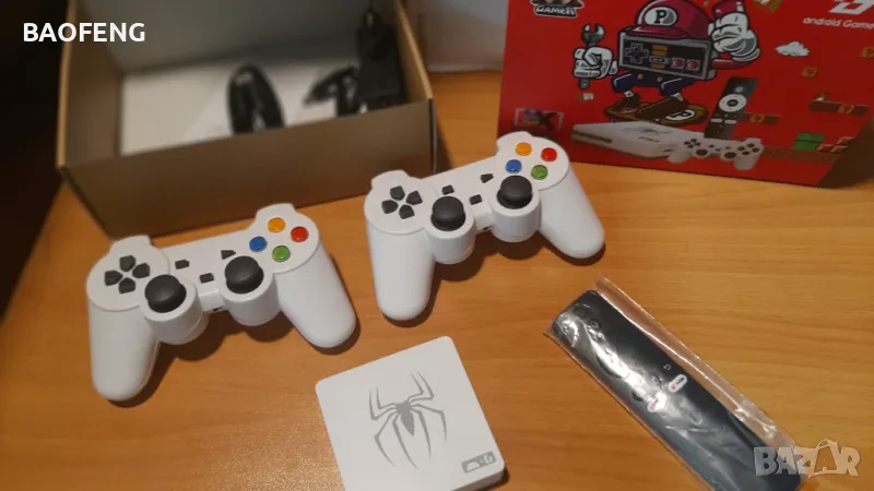 Нови от вносител Обновеният модел от тази година с бежични джойстици. Идеален бокс на който можете да гледате стотици хиляди филми сериали и телевизионни канали напълно безплатно. Купувате продукт с който можете не само да гледате филми и телевизия но и да играете игри и да направите вашият телевизор смарт. С този тв бокс можете да правите всияко което и на компютъра и много повече.