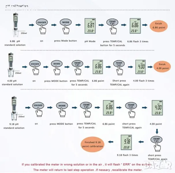 ≋pH: 1, 2, 3 точково автоматично калибриране.
