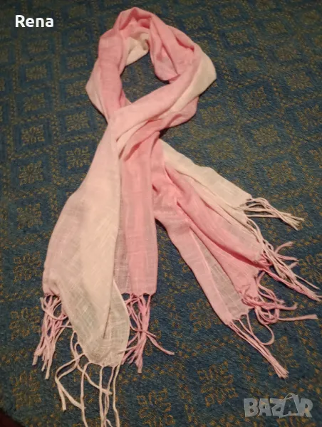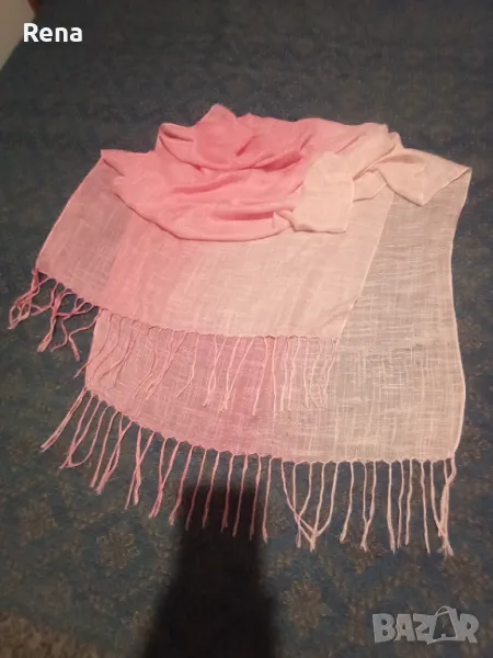 Предлагам дамски шал в преливащо розово към светло розово. Страхотно нежна и фина материя. Той е с размери 60 см/1.72 м с ресни 10 см. Подходящ е за върху тоалета, като допълнение; може и да покрива рамената в летните вечери или както Ви подскаже Вашата фантазия. Цената му е 10.00 лв