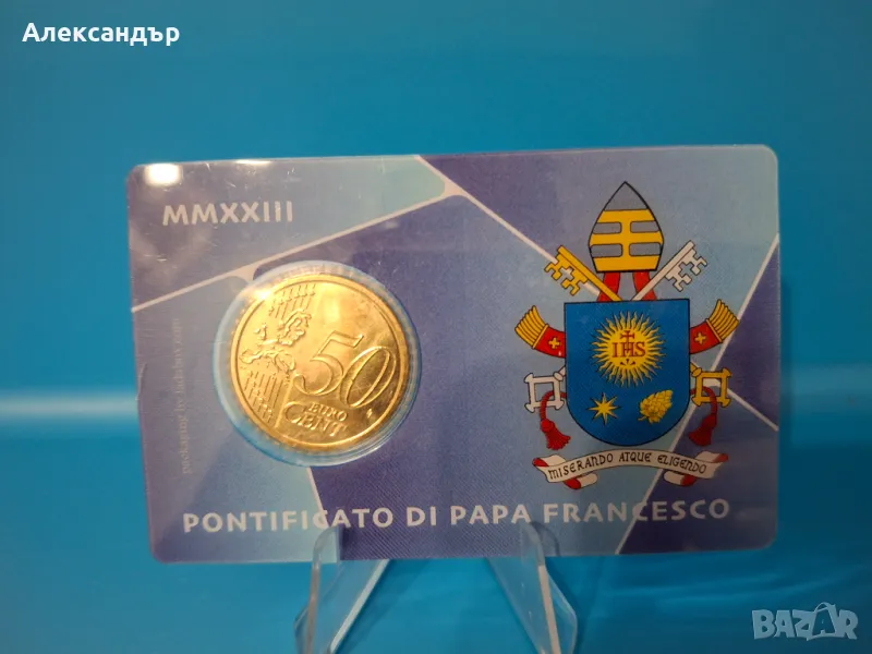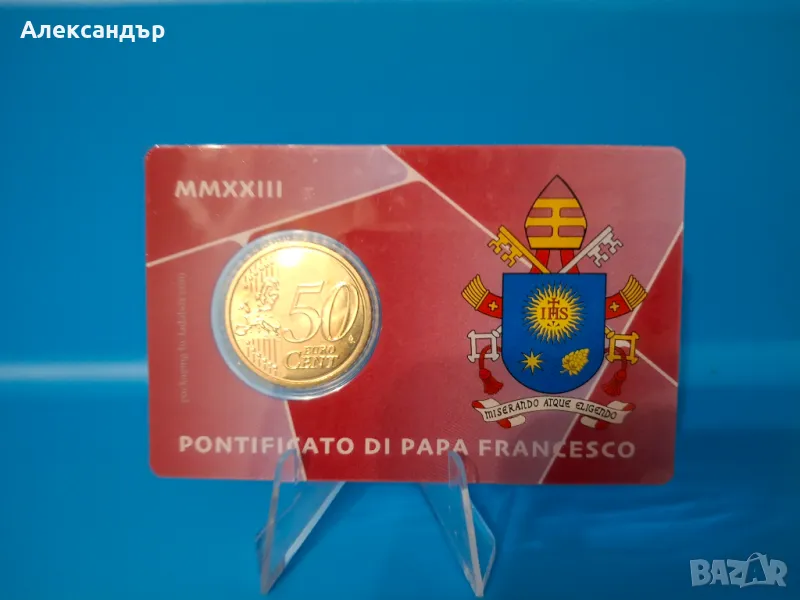 Монета Ватикан от 50 цента BU в карта N°44, 45, 46, 47 с марка. → Обява 48854710